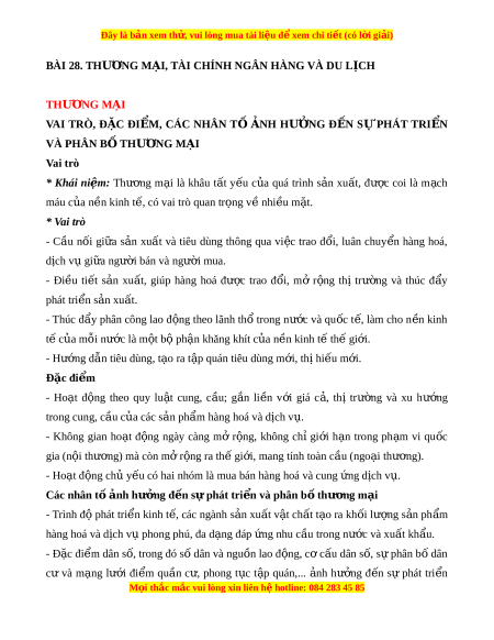 BÀI 28. TH NG M I, TÀI CHÍNH NGÂN HÀNG VÀ DU L CHƯƠ Ạ Ị