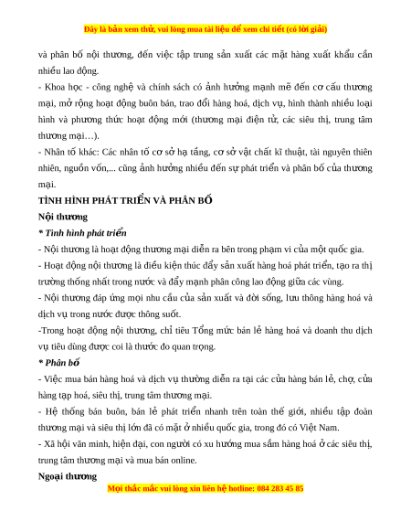 nhóm là mua bán hàng hoá và cung ng d ứ ch v ị . ụ Các nhân t ố n ả h hư ng đ ở n s ế phát ự tri n và phân b ể t ố hư ng m ơ i ạ - Trình độ phát tri n ể kinh t , ế các ngành s n ả xu t ấ v t ậ ch t ấ t o ạ ra kh i ố lư ng ợ s n ả ph m ẩ