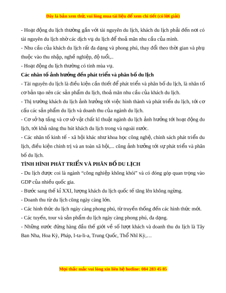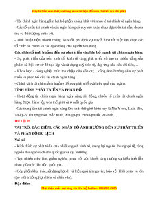 nguồn thu ngân sách cho quốc gia và đ a ph ị ư ng. ơ - T o ạ nhi u ề vi c ệ làm, gi m ả nghèo, ph c ụ h i ồ s c ứ kho ; ẻ tăng cư ng ờ sự hi u ể bi t ế l n ẫ nhau gi a ữ các dân t c, ộ quốc gia. - Góp ph n khai ầ thác, s ử d ng h ụ p ợ lí và hi u qu ệ t ả ài nguyên; b o ả v , ệ khôi ph c ụ và tôn t o ạ môi trư ng ( ờ t nhi ự ên và nhân văn). Đặc đi m ể M i ọ thắc m c