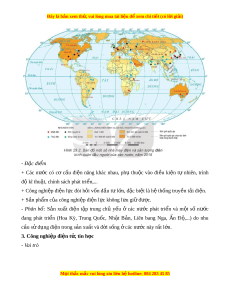 ậ , chính sách phát tri n,... ể + Công nghi p đi ệ n l ệ c đòi ự h i ỏ v n đ ố u t ầ l ư n, đ ớ c ặ bi t ệ là h t ệ h ng t ố ruy n ề t i ả đi n. ệ + S n ả ph m ẩ c a ủ công nghi p đi ệ n l ệ c ự không l u gi ư đ ữ ư c. ợ - Phân b : ố S n ả xu t ấ đi n ệ t p ậ trung chủ y u ế ở các nư c ớ phát tri n ể và m t ộ số nư c ớ đang phát tri n ể (Hoa Kỳ, Trung Qu c, ố Nh t ậ B n, ả Liên bang Nga, n Ấ Đ ,...) ộ do nhu cầu sử d ng đi ụ ện trong s n ả xu t ấ và đ i ờ s ng ố ở các nư c ớ này r t ấ l n. ớ 3. Công nghi p đ ệ i n t ệ , t ử in h c ọ - Vai trò M i