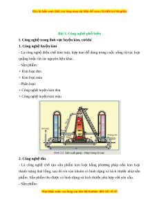 Đây là bản xem th , vu ử i lòng mua tài li u ệ đ xe ể m chi ti t (c ế ó l i ờ gi i ả ) Bài 3. Công ngh p ệ hổ bi n ế I. Công ngh t ệ rong lĩnh v c l ự uy n k ệ im, c khí ơ 1. Công ngh l ệ uy n k ệ im - Là công nghệ đi u ề chế kim lo i ạ , h p ợ kim đ ể dùng trong cu c ộ s ng ố t ừ các lo i ạ qu ng ặ ho c t