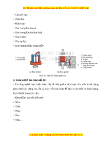 Đây là bản xem th , vu ử i lòng mua tài li u ệ đ xe ể m chi ti t (c ế ó l i ờ gi i ả ) + Chi ti t ế đúc + Phôi đúc - Phân lo i ạ : + Đúc trong khuôn cát + Đúc trong khuôn kim lo i ạ + Đúc li tâm + Đúc áp l c ự + Đúc khuôn m u nóng ch ẫ y ả 3. Công ngh gi ệ a công c t ắ g t ọ - Là công nghệ th c ự hi n ệ vi c ệ l y ấ đi m t ộ ph n ầ kim lo i ạ c a ủ phôi dư i ớ d ng ạ phoi nhờ các d ng ụ cụ c t ắ và máy c t ắ kim lo i ạ để t o ạ ra chi ti t ế có hình d ng, ạ kích thư c ớ theo yêu c u. ầ - S n ph ả ẩm: các chi ti t ế máy - Gồm: + Ti n ệ + Phay + Bào + Mài,… M i