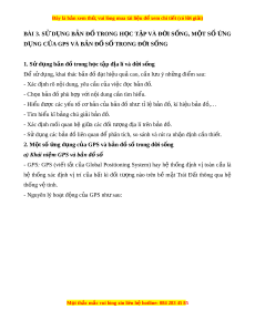 Đây là bản xem th , vu ử i lòng mua tài li u ệ đ xe ể m chi ti t ế (có l i ờ gi i ả ) BÀI 3. SỬ D N Ụ G B N Ả ĐỒ TRONG H C Ọ T P Ậ VÀ Đ I Ờ S N Ố G, M T Ộ S Ố N Ứ G D N Ụ G C A Ủ GPS VÀ B N Ả Đ S Ồ Ố TRONG Đ I Ờ S N Ố G