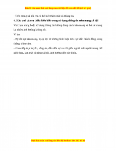 giới thực, làm mất kĩ năng xã hội, ảnh hưởng đến sức khỏe.