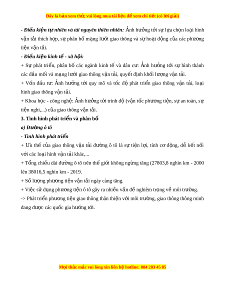 ên và tài nguyên thiên nhiên: nh Ả hư ng ở t i ớ sự l a ch ự n ọ lo i ạ hình v n ậ t i ả thích h p, ợ sự phân b ố m ng ạ lư i ớ giao thông và s ự ho t ạ đ ng ộ c a ủ các phư ng ơ ti n v ệ n t ậ i ả . - Đi u ki ề n ki ệ nh t - ế xã h i ộ : + Sự phát tri n,