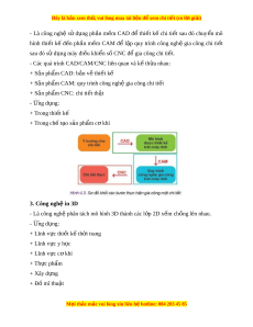 ẩ CAM: quy trình công ngh g ệ ia công chi ti t ế + S n ả ph m ẩ CNC: chi ti t ế th t ậ - ng d Ứ ng: ụ + Trong thi t ế kế + Trong ch t ế o ạ s n ả ph m ẩ c khí ơ 3. Công ngh i ệ n 3D - Là công ngh phân t ệ