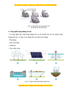 Đây là bản xem th , vu ử i lòng mua tài li u ệ đ xe ể m chi ti t (c ế ó l i ờ gi i ả ) 4. Công ngh năng l ệ ư ng ợ tái t o ạ - Là công nghệ s n ả xu t ấ năng lư ng ợ trên cơ sở chuy n ể hóa từ các ngu n ồ năng lư ng ợ liên t c, vô h ụ n, í ạ t tác đ ng ộ tiêu c c đ ự n m ế ôi trư ng. ờ - ng d Ứ ng: ụ + S n ả xu t ấ đi n ệ + Sư i ở m ấ + T o n ạ ư c nóng ớ M i