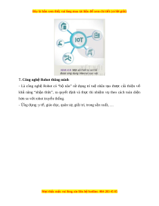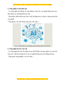 ộ hóa các hành vi thông minh như con ngư i ờ . - ng d Ứ ng: ụ y t , ki ế nh doanh, giáo d c, ụ s n ả xu t ấ , … 6. Công ngh i ệ nternet v n v ạ t ậ - Là công nghệ k t ế n i ố , thu th p ậ và trao đ i ổ d ữ li u ệ v i ớ nhau gi a ữ các máy tính, máy móc, thi t ế b kĩ ị thu t ậ số và c con ả ngư i ờ thông qua môi trư ng ờ internet. - ng d Ứ ng: ụ công nghi p, y t ệ , t ế ài chính, … M i