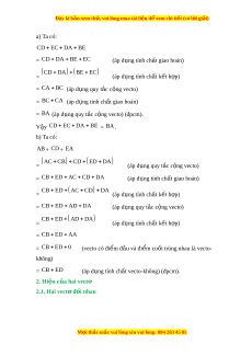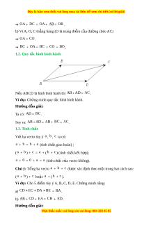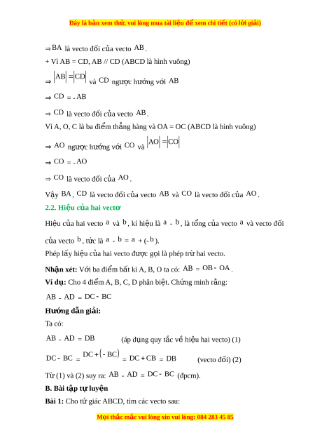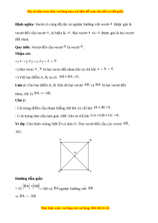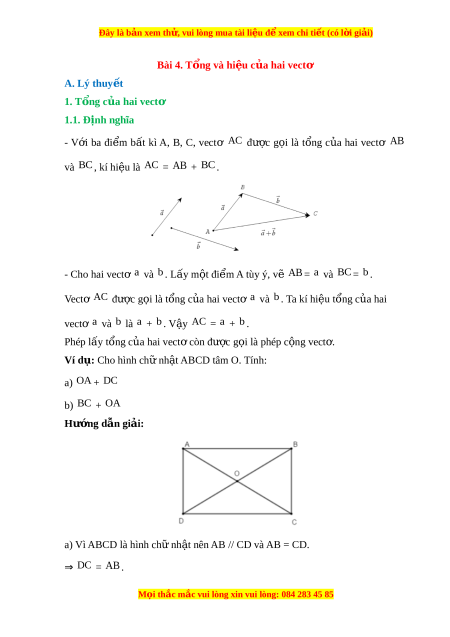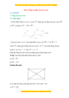 Đây là bản xem th , vu ử i lòng mua tài li u ệ đ xe ể m chi ti t ế (có l i ờ gi i ả ) Bài 4. T ng ổ và hi u c ệ a hai ủ vectơ A. Lý thuy t ế 1. T ng c ổ a hai ủ vectơ 1.1. Đ nh ng ị hĩa