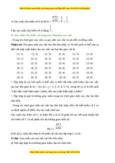 4); (4; 5); (4; 6); (5; 1); (5; 2); (5; 3); (5; 4); (5; 5); (5; 6); (6; 1); (6; 2); (6; 3); (6; 4); (6; 5); (6; 6)}. ⇒ n(Ω) = 36. Các k t ế quả thu n ậ l i ợ cho bi n