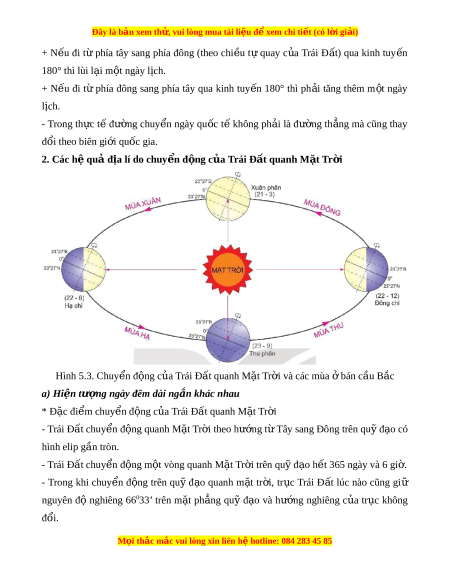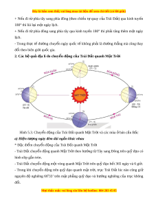 ế đi từ phía đông sang phía tây qua kinh tuy n ế 180° thì ph i ả tăng thêm m t ộ ngày lịch. - Trong th c ự t ế đư ng ờ chuy n ể ngày qu c ố t ế không ph i ả là đư ng ờ th ng ẳ mà cũng thay đổi theo biên gi i ớ qu c gi ố a. 2. Các h qu ệ đ ả a l ị í do chuy n đ ể ng c ộ a ủ Trái Đ t ấ quanh M t ặ Tr i ờ Hình 5.3. Chuy n đ ể ng ộ c a ủ Trái Đ t ấ quanh M t ặ Tr i
