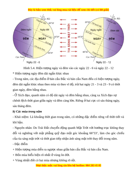 Đây là bản xem th , vu ử i lòng mua tài li u ệ đ xe ể m chi ti t ế (có l i ờ gi i ả ) BÀI 5. HỆ QUẢ Đ A Ị LÍ CÁC CHUY N Ể Đ N Ộ G C A Ủ TRÁI Đ T Ấ 1. H qu ệ ả đ a l ị í c a chuy ủ n đ ể ng t ộ q ự uay quanh tr c ụ Hình 5.1. Chuy n đ ể ng ộ t quay và hi ự n t ệ ư ng ngày đêm ợ trên Trái Đ t ấ