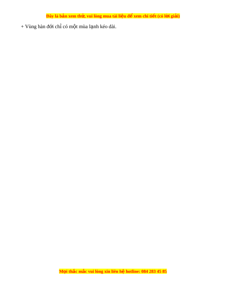 + Vùng hàn đ i ch có m t mùa l nh kéo dài.ớ ỉ ộ ạ