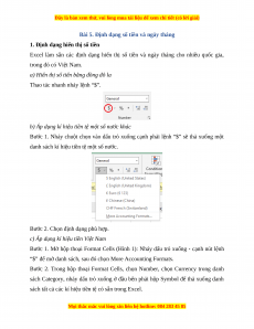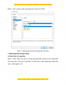 Hình 1: Định dạng hiển thị theo đồng tiền Việt Nam