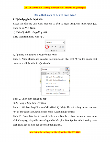 Lý thuyết Bài 5: Định dạng số tiền và ngày tháng