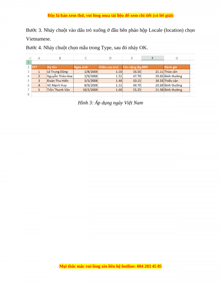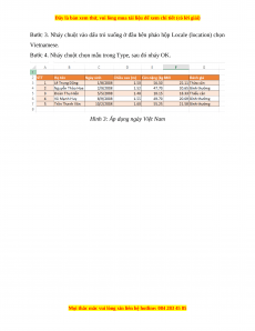 2) Chọn áp dụng định dạng ngày tháng kiểu Việt Nam. Hướng dẫn: 1. Thêm cột ngày sinh: