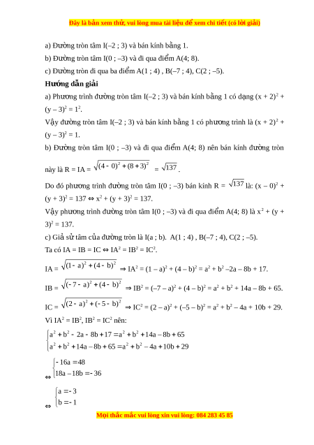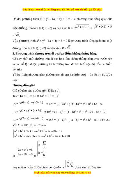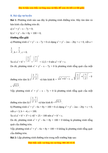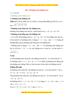 Đây là bản xem th , vu ử i lòng mua tài li u ệ đ xe ể m chi ti t ế (có l i ờ gi i ả ) Bài 5. Phư ng t ơ rình đư ng ờ tròn A. Lý thuy t ế I. Phư ng ơ trình đư ng t ờ ròn 1. Phư ng t ơ rình đư ng t ờ ròn Nhận xét: V i ớ hai đi m