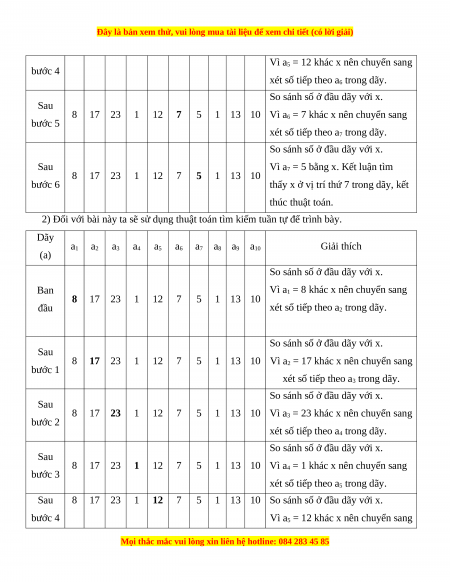 1) Đối với bài này ta sẽ sử dụng thuật toán tìm kiếm tuần tự để trình bày. Dãy a1 a2 a3 a4 a5 a6 a7 a8 a9 a10 Giải thích (a)