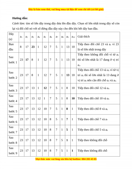 lại và đổi chỗ nó với số đứng đầu dãy này cho đến khi hết dãy ban đầu. Dãy a1 a2 a3 a4 a5 a6 a7 a8 a9 a10 Giải thích (a) Ban