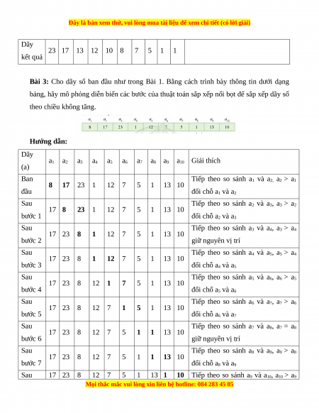 bảng, hãy mô phỏng diễn biến các bước của thuật toán sắp xếp nổi bọt để sắp xếp dãy số
