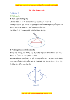 Đây là bản xem th , vu ử i lòng mua tài li u ệ đ xe ể m chi ti t ế (có l i ờ gi i ả ) Bài 6. Ba đư ng coni ờ c A. Lý thuy t ế I. Đư ng el ờ ip 1. Đ nh ng ị hĩa đư ng el ờ ip Cho hai đi m