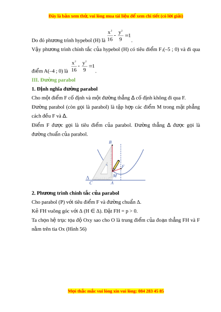 Đây là bản xem th , vu ử i lòng mua tài li u ệ đ xe ể m chi ti t ế (có l i ờ gi i ả ) 2 2 x y 1 Do đó phư ng t ơ rình elip (E) là 13 4 . V y ậ phư ng ơ trình chính t c ắ c a ủ elip (E) có tiêu đi m