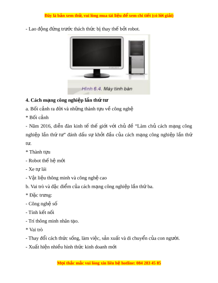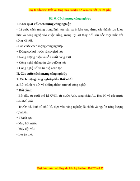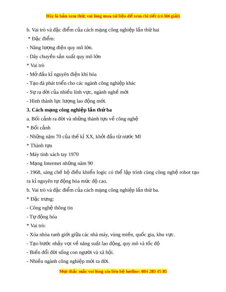 Đây là bản xem th , vu ử i lòng mua tài li u ệ đ xe ể m chi ti t (c ế ó l i ờ gi i ả ) b. Vai trò, đ c ặ đi m ể c a cách ủ m ng công nghi ạ p l ệ n t ầ h nh ứ t ấ . * Đặc đi m ể : - Năng lư ng h ợ i ơ nư c ớ - Cơ gi i ớ hóa * Vai trò - S n xu ả ất phát tri n ể - Nâng cao năng su t ấ lao đ ng ộ - T o b ạ t
