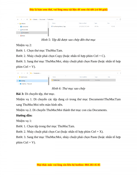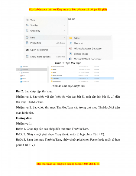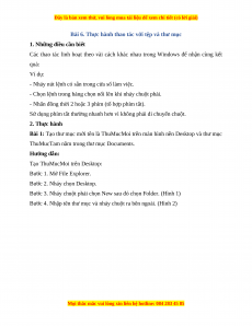 Nhiệm vụ 2. Sao chép thư mục ThuMucTam vào trong thư mục ThuMucMoi trên màn hình nền. Hướng dẫn: Nhiệm vụ 1: