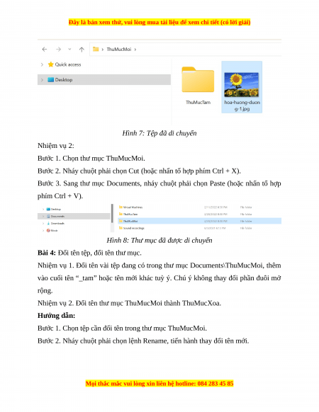Nhiệm vụ 1. Đổi tên vài tệp đang có trong thư mục Documents\ThuMucMoi, thêm