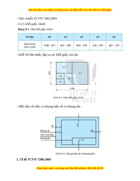 Đây là bản xem th , vu ử i lòng mua tài li u ệ đ xe ể m chi ti t (c ế ó l i ờ gi i ả ) - Tiêu chuẩn TCVN 7285:2003 - Có 5 khổ gi y chí ấ nh - Khổ A0 l n nh ớ t ấ , l p r ậ a các kh gi ổ y còn l ấ i ạ - Mỗi b n v ả đ ẽ u có ề khung b n v ả và khung t ẽ ên 2. T l ỉ ệ TCVN 7286:2003 M i