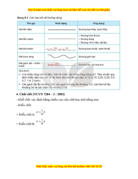 Đây là bản xem th , vu ử i lòng mua tài li u ệ đ xe ể m chi ti t (c ế ó l i ờ gi i ả ) - Là t s ỉ ố gi a ữ kích thư c dài ớ đo đư c ợ trên b n v ả v ẽ t ậ th và ể kích thư c t ớ h c t ự ế trên v t ậ th đó. ể - Các lo i ạ t l ỉ : ệ + Nguyên hình + Thu nhỏ + Phóng to - Trên b n v ả ẽ là kích thư c ớ th c, không ph ự t ụ hu c b ộ n ả vẽ 3. Nét v ẽ TCVN8 – 24 : 2002