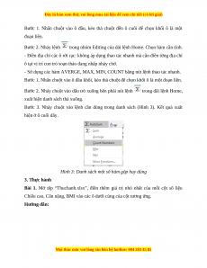 - Sử dụng các hàm AVERGE, MAX, MIN, COUNT bằng nút lệnh thao tác nhanh.