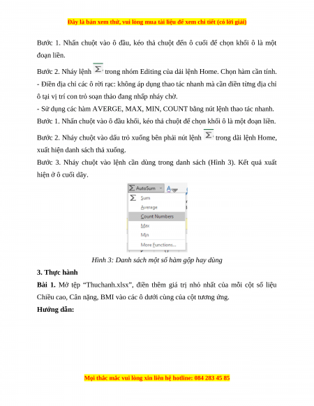 dùng như SUM, AVERAGE, MAX, MIN, COUNT có trong nhóm lệnh Editing của dải lệnh Home.