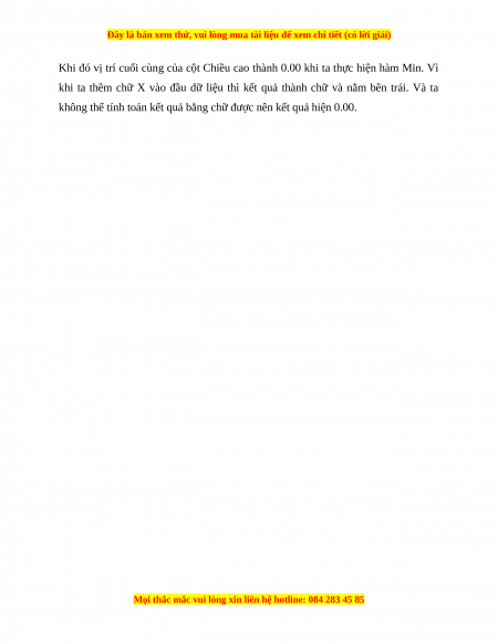 Khi đó vị trí cuối cùng của cột Chiều cao thành 0.00 khi ta thực hiện hàm Min. Vì