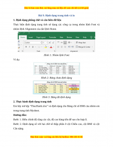 Thực hiện định dạng trang tính sử dụng các công cụ trong nhóm lệnh Font và