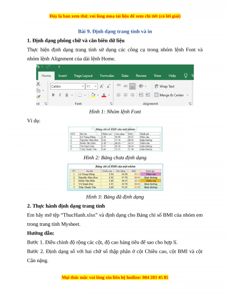 Lý thuyết Bài 9: Định dạng trang tính và in