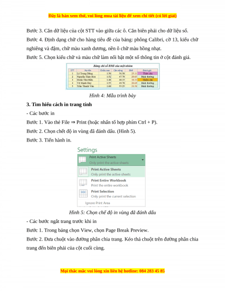 Bước 2. Chọn chết độ in vùng đã đánh dấu. (Hình 5). Bước 3. Tiến hành in.