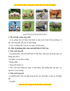 ợ hình thành và chăn nuôi ở m t ộ số đ a ị phư ng. ơ Có đ c ặ tính riêng bi t ệ , n i ổ tr i ộ v ch ề t ấ lư ng. ợ - Ví d : ụ Gà Đông T o, L ả n c ợ , bò vàng, ỏ chó Phú Qu c, ố … III. M t ộ số phư ng ơ th c chăn n ứ uôi ph bi ổ n ế ở Vi t ệ Nam
