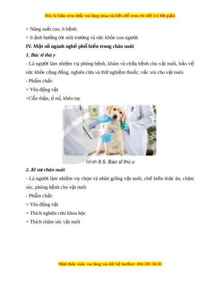 Đây là bản xem th , vu ử i lòng mua tài li u ệ đ xe ể m chi ti t (c ế ó l i ờ gi i ả ) + Năng su t ấ cao, ít b nh. ệ + ít nh ả hư ng t ở i ớ môi trư ng ờ và s c ứ kh e con ng ỏ ư i ờ . IV. M t ộ số ngành ngh ph ề bi ổ n t ế rong chăn nuôi