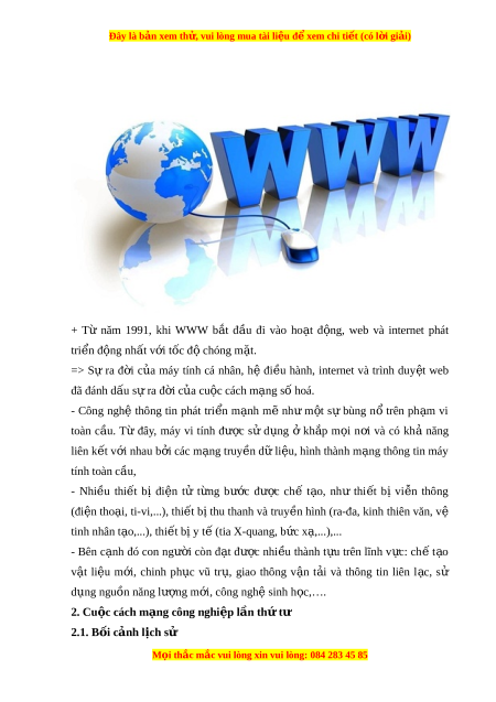 Đây là bản xem th , vu ử i lòng mua tài li u ệ đ xe ể m chi ti t ế (có l i ờ gi i ả ) + Từ năm 1991, khi WWW b t ắ đ u ầ đi vào ho t ạ đ ng, ộ web và internet phát tri n đ ể ng ộ nh t ấ v i ớ t c đ ố chóng ộ m t ặ . => Sự ra đ i ờ c a