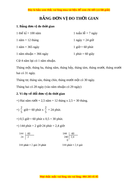 Đây là bản xem th , vu ử i lòng mua tài li u ệ đ xe ể m chi ti t ế (có l i ờ gi i ả ) BẢNG Đ N Ơ V ĐO Ị TH I GIAN Ờ 1. Bảng đ n v ơ ị đo th i ờ gian 1 th k