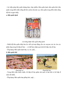 Ấ TẾ BÀO TRONG TH C Ự TI N Ễ 1. Bảo quản lư ng ơ th c, t ự h c ph ự m ẩ - Cơ sở c a ủ các bi n ệ pháp b o ả qu n ả lư ng ơ th c, ự th c ự ph m ẩ : Hô h p ấ t ế bào phân gi i ả chất h u c ữ ơ c a ủ t ế bào làm gi m ả s l ố ư ng ợ và ch t ấ lư ng ợ c a ủ lư ng ơ th c, ự th c ph ự m ẩ sau m t ộ th i ờ gian b o ả qu n. ả Vì v y ậ , ngư i ờ ta thư ng ờ th c ự hi n ệ các bi n ệ pháp b o ả qu n ả lư ng t ơ h c, t ự h c ự ph m ẩ đ kh ể ng ch ố s ế ao cho hô h p l ấ uôn m c t ứ i ố thi u. ể - Các bi n pháp ệ b o qu ả n ả lư ng t ơ h c, t ự h c ph ự m ẩ : B o ả qu n l ả nh, ạ b o qu ả n ả khô, b o ả qu n ả trong đi u ề ki n ệ n ng ồ đ