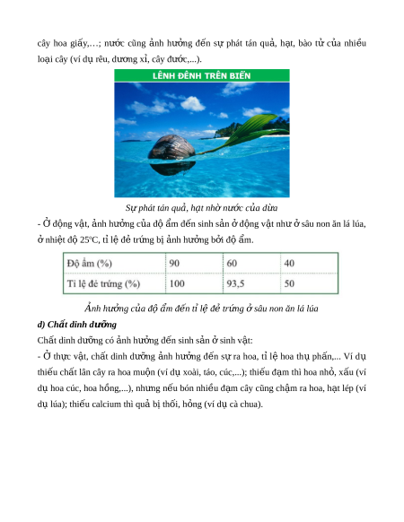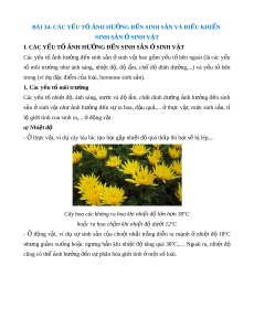 Các y u t nhi t đ , ánh sáng, n c và đ m, ch t dinh d ng nh h ng đ n sinhế ố ệ ộ ướ ộ ẩ ấ ưỡ ả ưở ế
