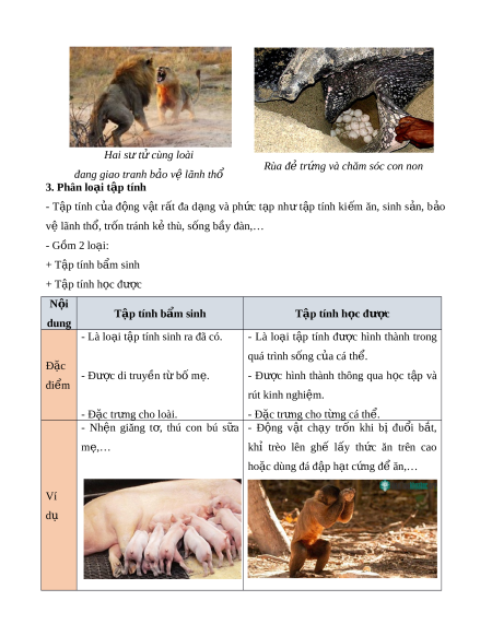 ư ử cái đang tấn công đàn ng a ự v n ằ Hai sư t cùng l ử oài Rùa đ t ẻ r ng và chăm ứ sóc con non đang giao tranh b o ả v l ệ ãnh thổ 3. Phân lo i ạ t p t ậ ính - T p ậ tính c a ủ đ ng ộ v t ậ r t ấ đa d ng ạ và ph c ứ t p ạ nh ư t p ậ tính ki m ế ăn, sinh s n, ả b o ả