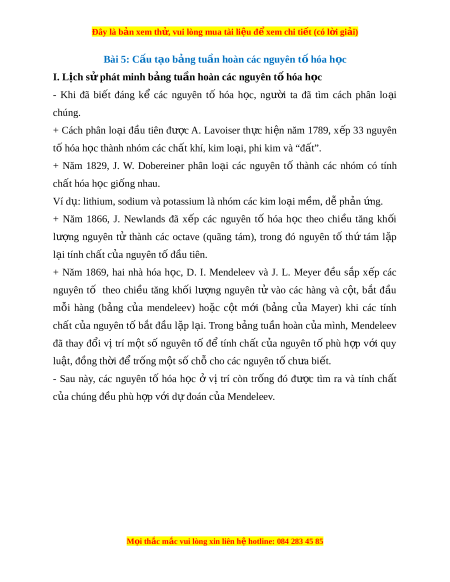 Đây là bản xem th , vu ử i lòng mua tài li u ệ đ xe ể m chi ti t (c ế ó l i ờ gi i ả ) - Khi s p ắ x p ế như v y ậ , sự tu n ầ hoàn tính ch t ấ c a ủ các đ n ơ ch t ấ và h p ợ ch t ấ đư c ợ th hi ể n qua chu kì ệ (hàng) và nhóm (c t ộ ). Chú ý: