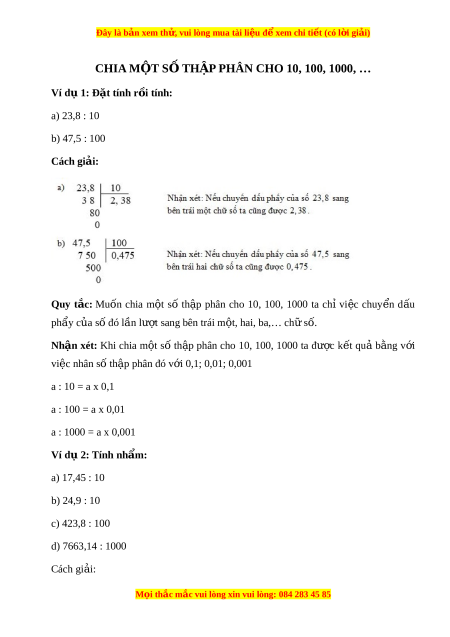 CHIA M T S TH P PHÂN CHO 10, 100, 1000, …Ộ Ố Ậ