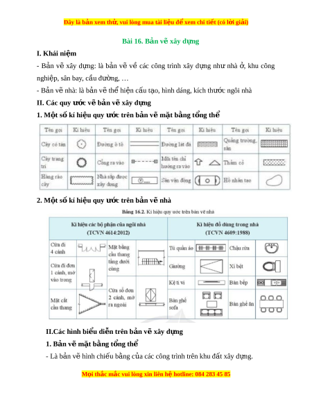 Đây là bản xem th , vu ử i lòng mua tài li u ệ đ xe ể m chi ti t (c ế ó l i ờ gi i ả ) Bài 16. Bản v xây d ẽ ng ự I. Khái ni m ệ - B n ả vẽ xây d ng: ự là b n