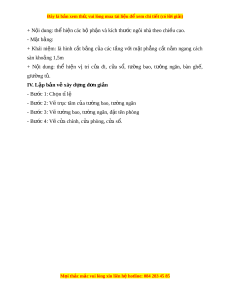 Đây là bản xem th , vu ử i lòng mua tài li u ệ đ xe ể m chi ti t (c ế ó l i ờ gi i ả ) + N i ộ dung: th hi ể n các ệ b ph ộ n và ậ kích thư c ngôi ớ nhà theo chi u ề cao. - M t ặ b ng: ằ + Khái ni m ệ : là hình c t ắ b ng ằ c a ủ các t ng ầ v i ớ m t ặ ph ng ẳ c t ắ n m ằ ngang cách sàn kho ng 1,5m ả + N i ộ dung: thể hi n ệ vị trí c a ử đi, c a ử s , ổ tư ng ờ bao, tư ng ờ ngăn, bàn gh , ế giư ng ờ t . ủ IV. Lập b n v ả xây d ẽ ng đ ự n gi ơ n ả - Bư c ớ 1: Ch n t ọ l ỉ ệ - Bư c ớ 2: V t ẽ r c t ụ âm c a ủ tư ng bao, t ờ ư ng ngăn ờ - Bư c ớ 3: V t ẽ ư ng ờ bao, tư ng ngăn, đ ờ t ặ tên phòng - Bư c ớ 4: V c ẽ a ử chính, c a phòng, c ử a ử s . ổ M i