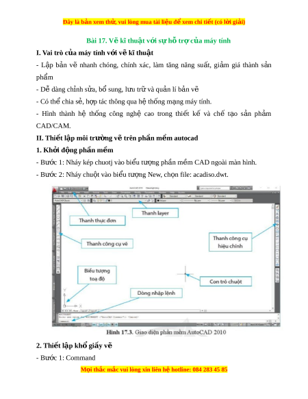 Đây là bản xem th , vu ử i lòng mua tài li u ệ đ xe ể m chi ti t (c ế ó l i ờ gi i ả ) Bài 17. V kĩ ẽ thu t ậ v i ớ s h ự t ỗ r c ợ a m ủ áy tính I. Vai trò c a m ủ áy tính v i ớ v kĩ ẽ thu t ậ - L p ậ b n