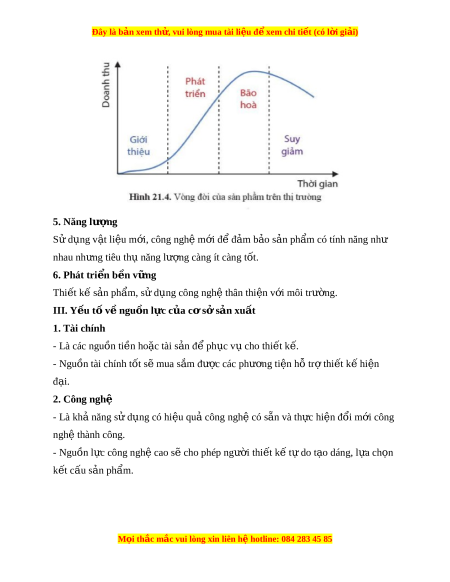 Đây là bản xem th , vu ử i lòng mua tài li u ệ đ xe ể m chi ti t (c ế ó l i ờ gi i ả ) 5. Năng lư ng ợ S d ử ng v ụ t ậ li u m ệ i ớ , công ngh m ệ i ớ đ đ ể m ả b o ả s n ả ph m ẩ có tính năng nh ư nhau nh ng ư tiêu th năng l ụ ư ng càng ợ ít càng t t ố . 6. Phát tri n b ể n v ề ng ữ Thi t ế k s ế n ả ph m ẩ , s d ử ng công ụ ngh t ệ hân thi n v ệ i ớ môi trư ng. ờ III. Y u t ế v ố ng ề u n ồ l c c ự a c ủ s ơ s ở n xu ả t ấ 1. Tài chính - Là các nguồn ti n ho ề c t ặ ài s n đ ả ể ph c v ụ cho t ụ hi t ế k . ế - Nguồn tài chính t t ố sẽ mua s m ắ đư c các ợ phư ng t ơ i n h ệ t ỗ r t ợ hi t ế k hi ế n ệ đ i ạ . 2. Công nghệ - Là kh năng s ả ử d ng có hi ụ ệu qu công ả ngh có ệ s n ẵ và th c hi ự n đ ệ i ổ m i ớ công nghệ thành công. - Nguồn l c công ngh ự cao s ệ ẽ cho phép ngư i ờ thi t ế k t ế do t ự o ạ dáng, l a ch ự n ọ k t ế c u s ấ n ph ả m ẩ . M i